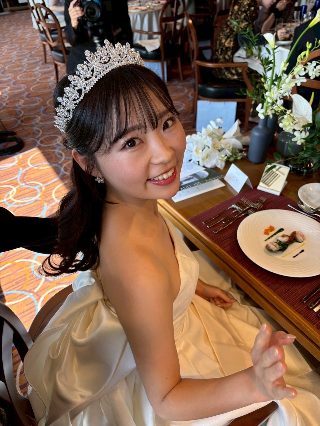 ブライダルシーンはもちろん、特別な日や華やかなパーティースタイルにも、高級感あふれる印象を添える一品です。